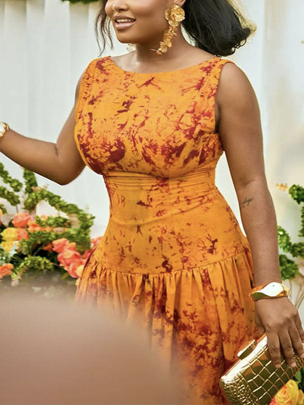 Bodycon Sleeveless Pleated Zipper Round-Neck Maxi Dresses