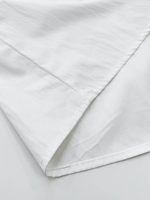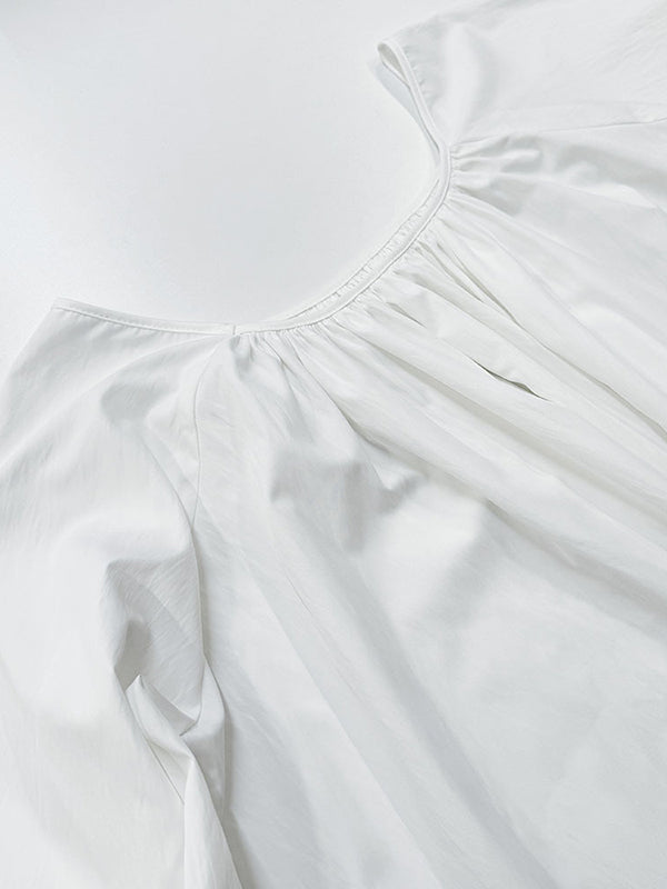 Flared Sleeves Loose Pleated Solid Color Split-Joint Round-Neck Maxi Dresses