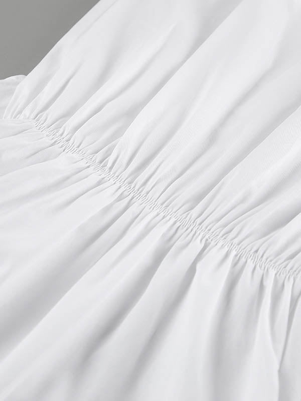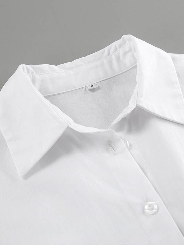 High Waisted Long Sleeves Buttoned Pleated Solid Color Lapel Mini Dresses Shirt Dress