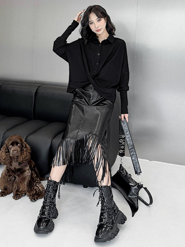 Hipster Irregularity Buttoned Solid Color Twist Lapel Collar Blouses&Shirts Tops