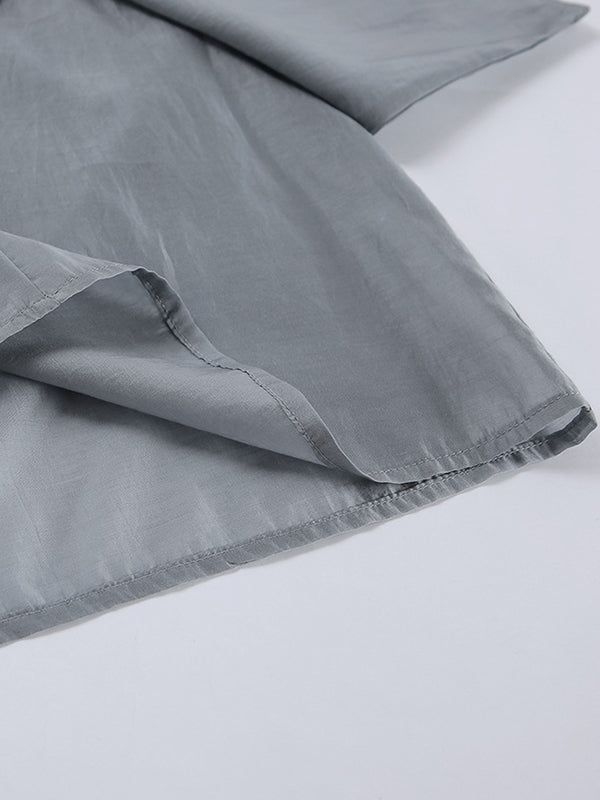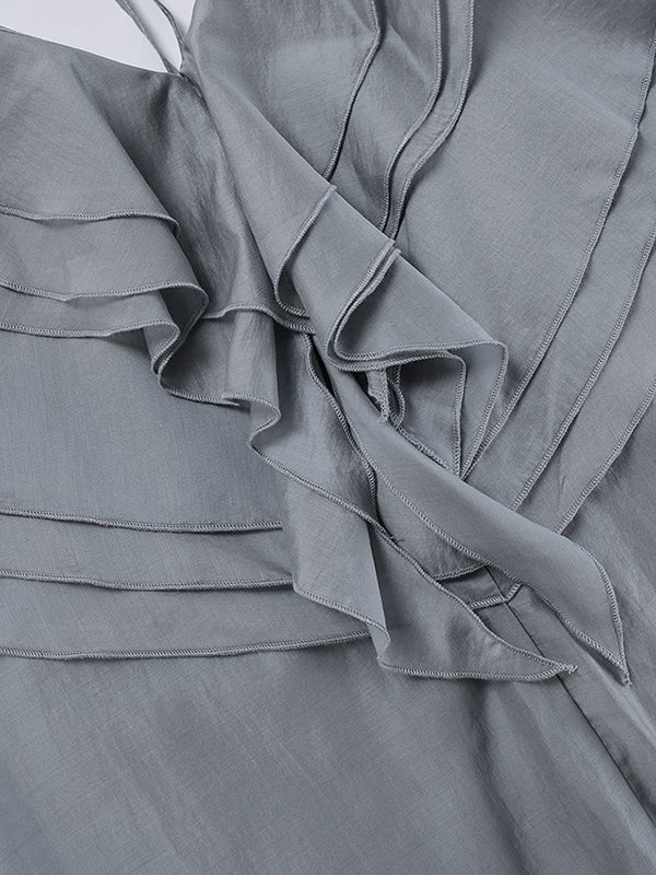 Long Sleeves Backless Ruffled Solid Color V-Neck Blouses&Shirts Tops