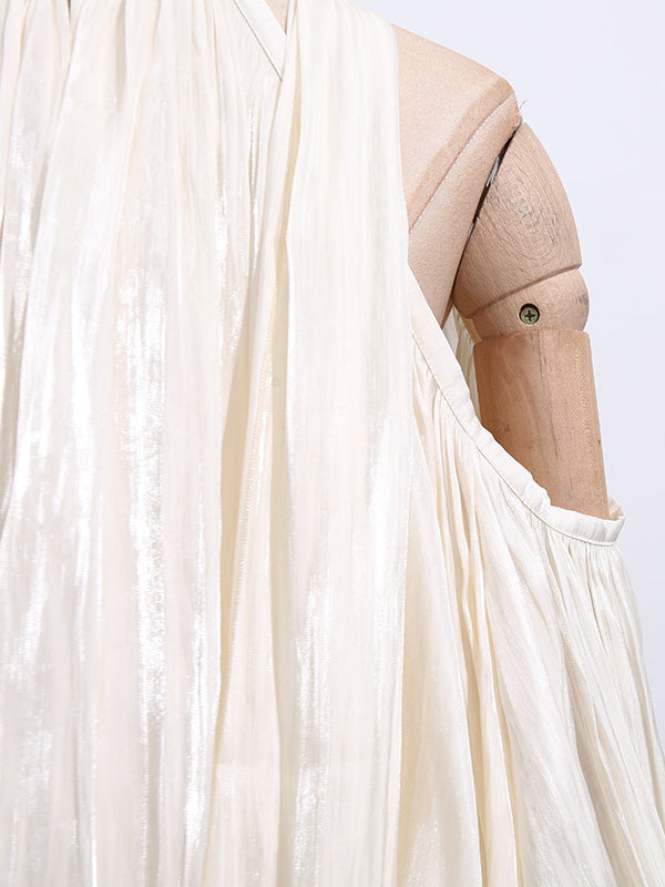 Long Sleeves Loose Pleated Solid Color Tied Halter-Neck Blouses&Shirts Tops
