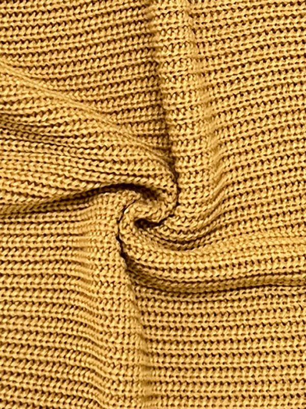 Long Sleeves Loose Solid Color Split-Joint Round-Neck Sweater Tops