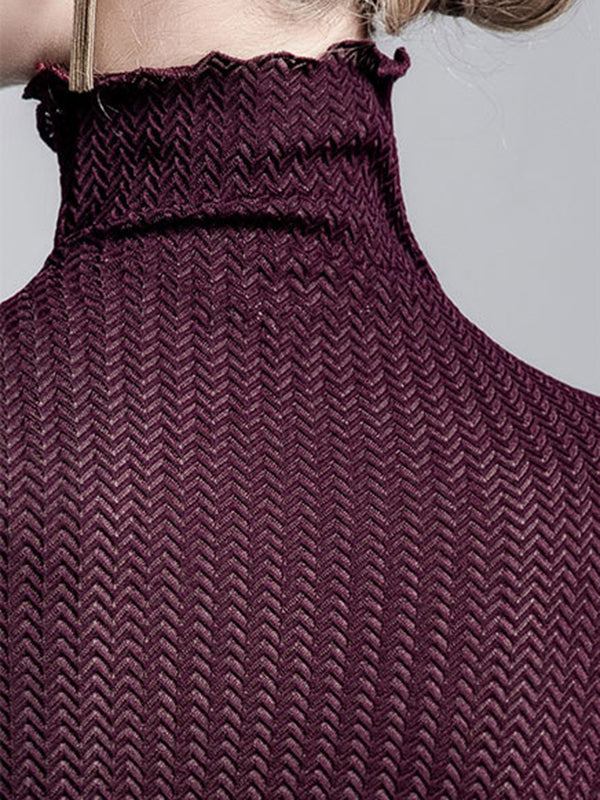 Long Sleeves Plus Size Mesh See-Through Slightly Sheer Split-Joint High Neck T-Shirts