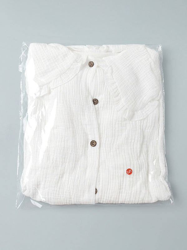 Long Sleeves Ruffled See-Through Split-Joint Peter Pan Collar Blouses&Shirts Tops