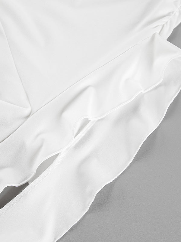 Long Sleeves Skinny Pleated Solid Color Round-Neck T-Shirts Tops