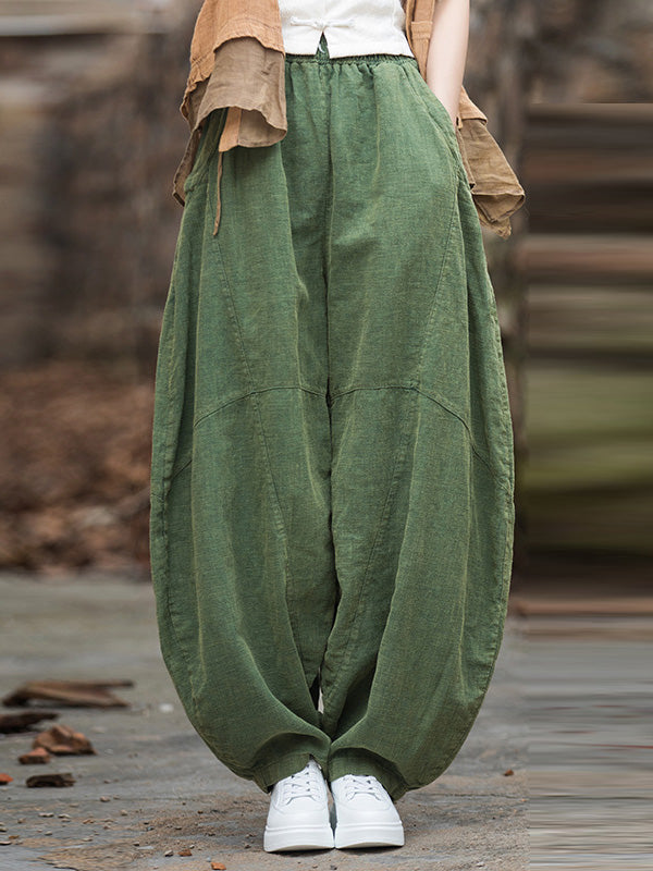 Loose Elasticity Pockets Solid Color Split-Joint Cropped Trousers Pants