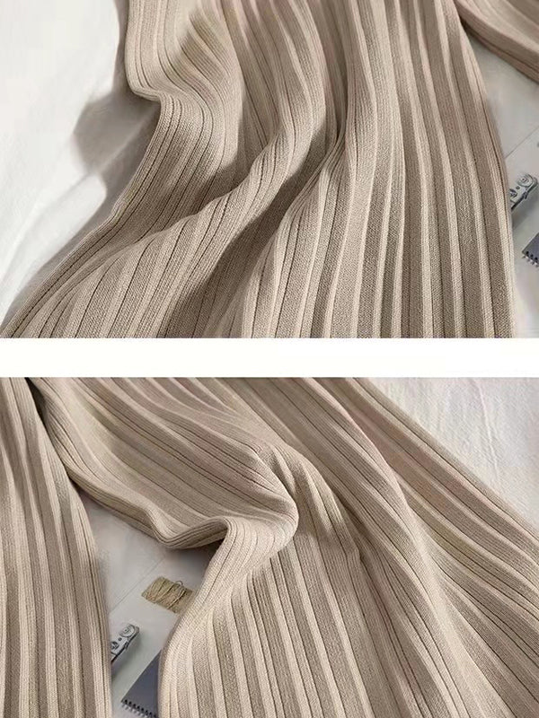 Loose Knitting Raglan Sleeve Solid Color V-Neck Sweater Top + Pants Two Pieces Set