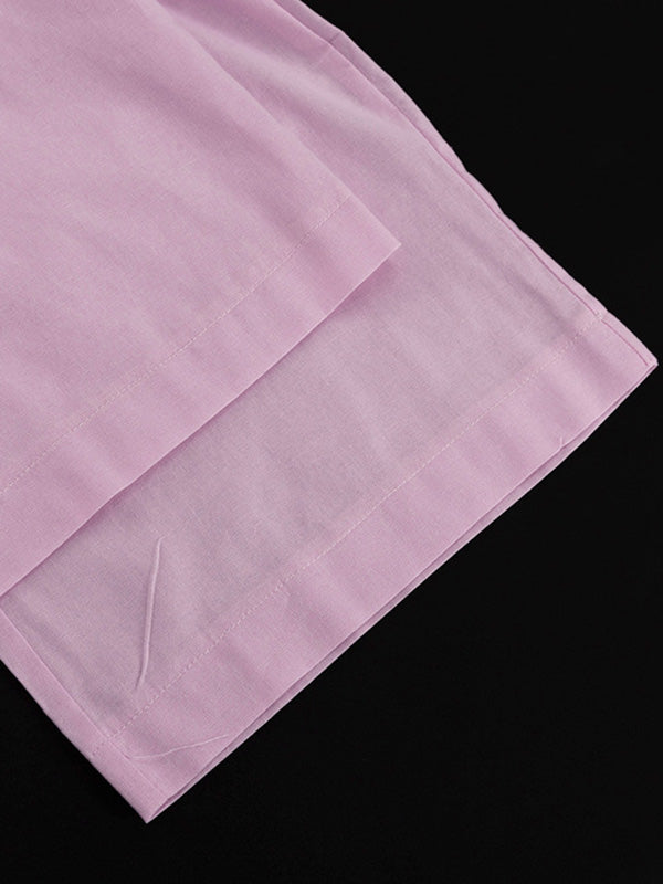 Loose Split-Joint Sleeveless Pleated V-Neck Vest + Pants Trousers Two Pieces Set