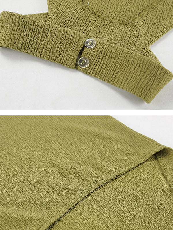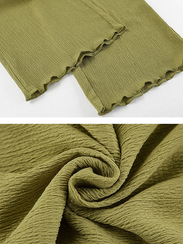 Solid Color Pleated Sleeveless Asymmetric High Neck Vest + Wide Leg Pants Two Pieces Set